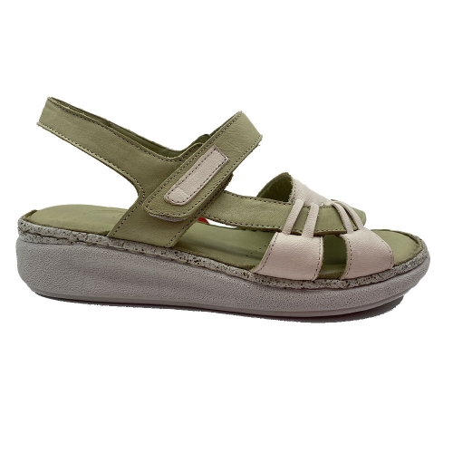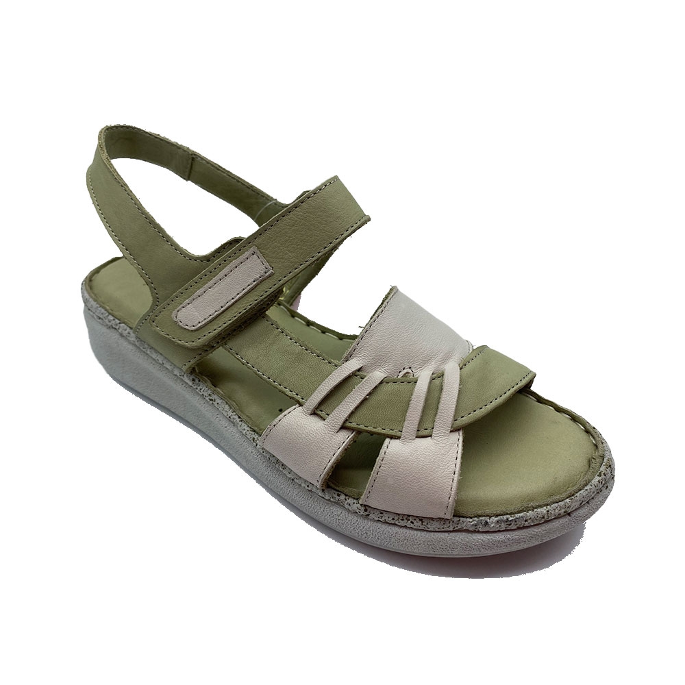 1415 sandalia todo en piel treintas crema y verde
