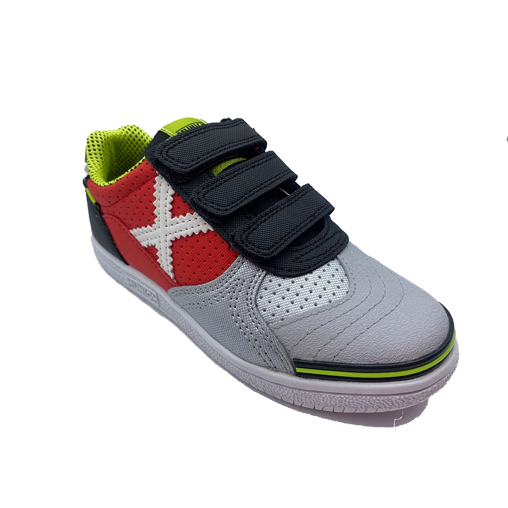 1514446 zapatillas munich niño 3velcros rojo gris