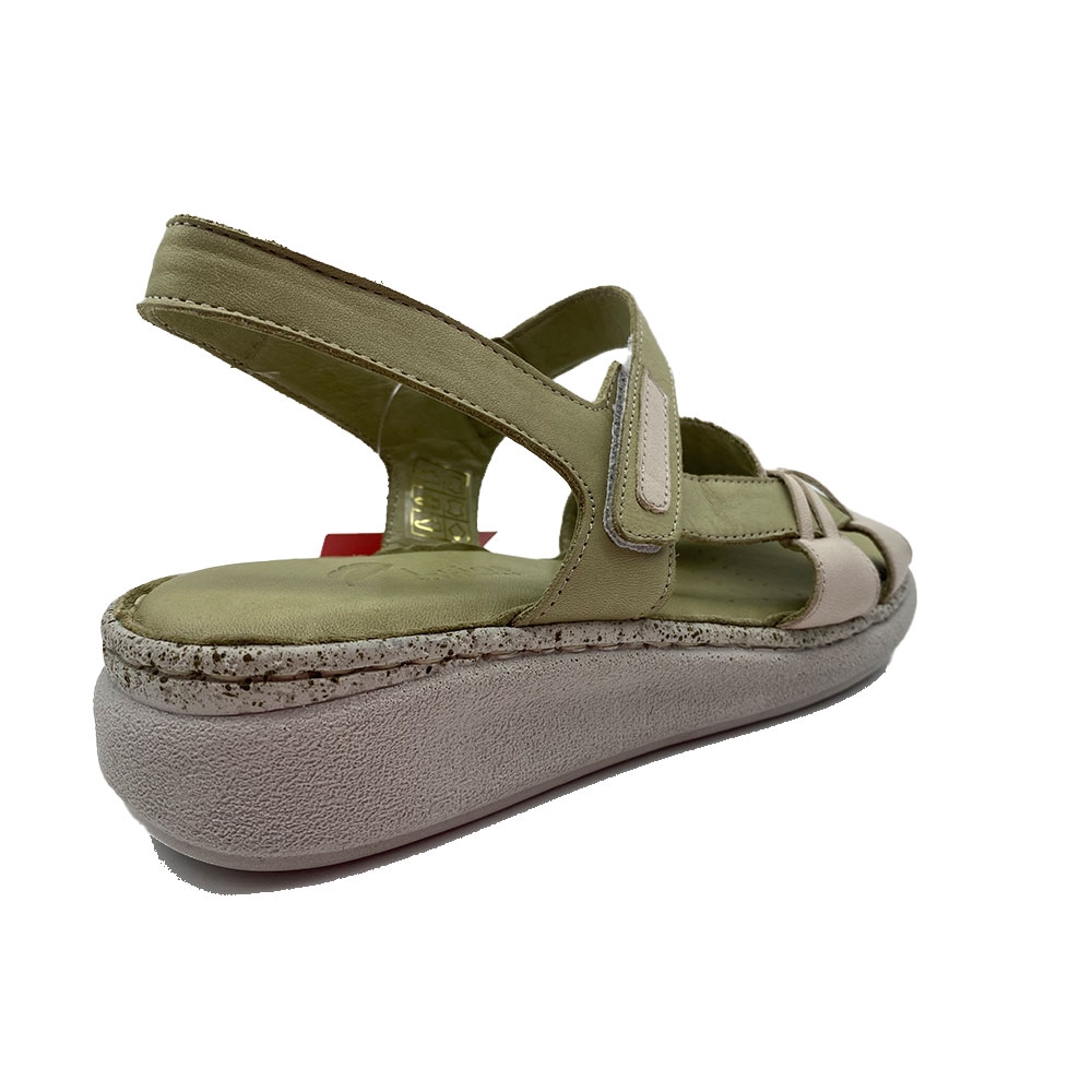 1415 sandalia todo en piel treintas crema y verde